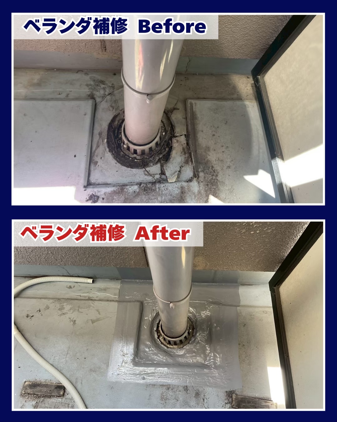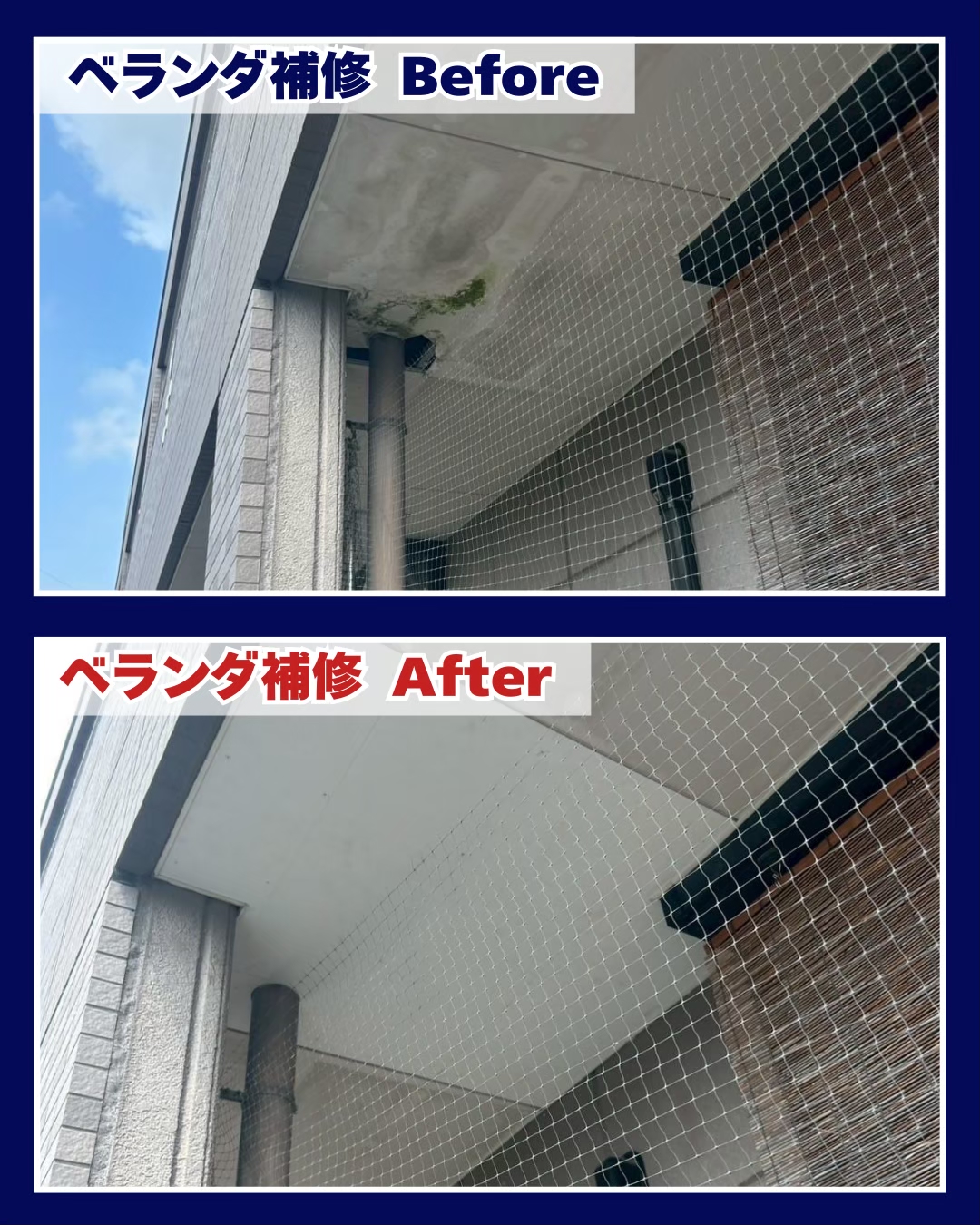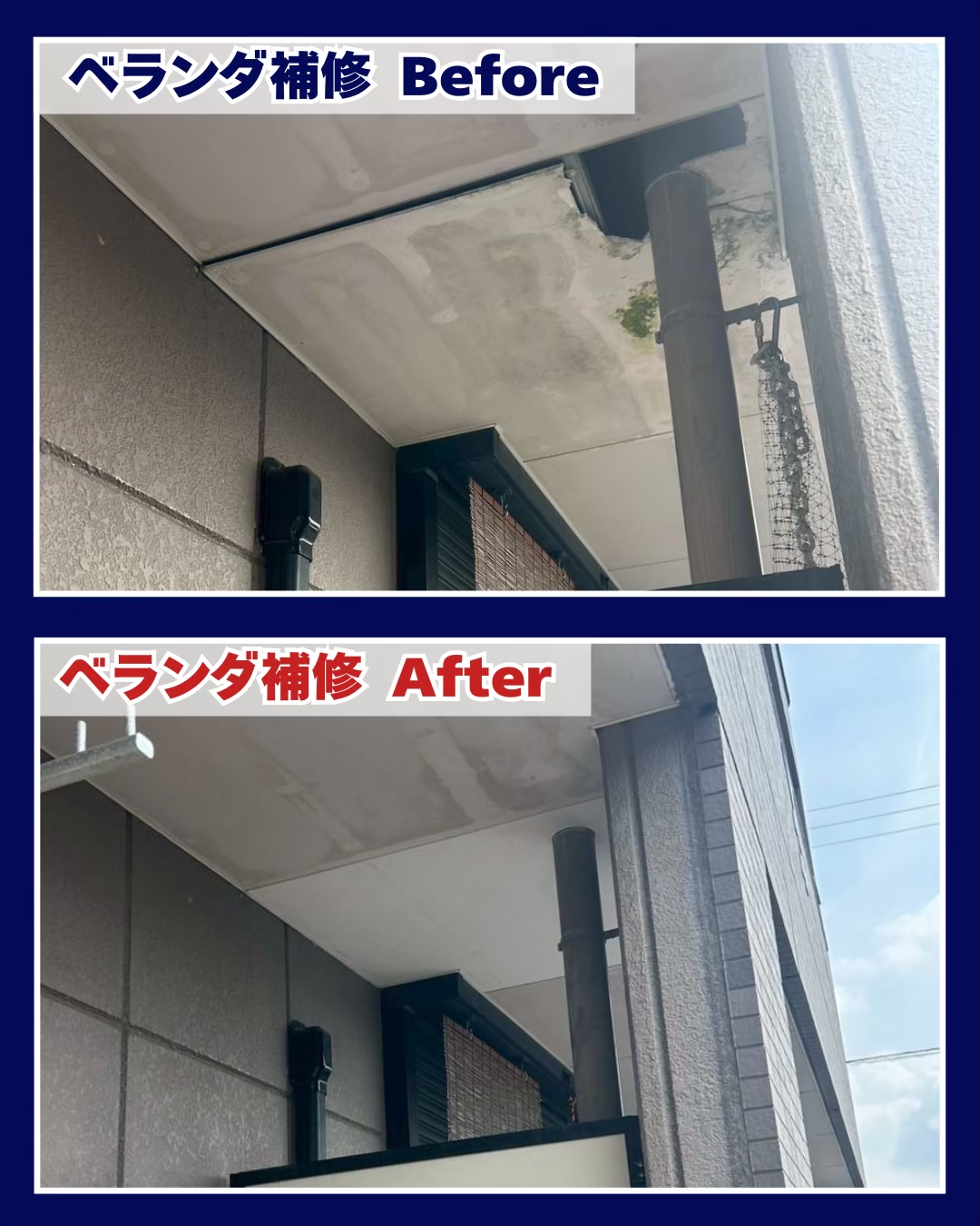 ベランダの天井部分に穴が空いて劣化が進んでいましたが、しっかり補修を行い、見違えるほどきれいになりました✨