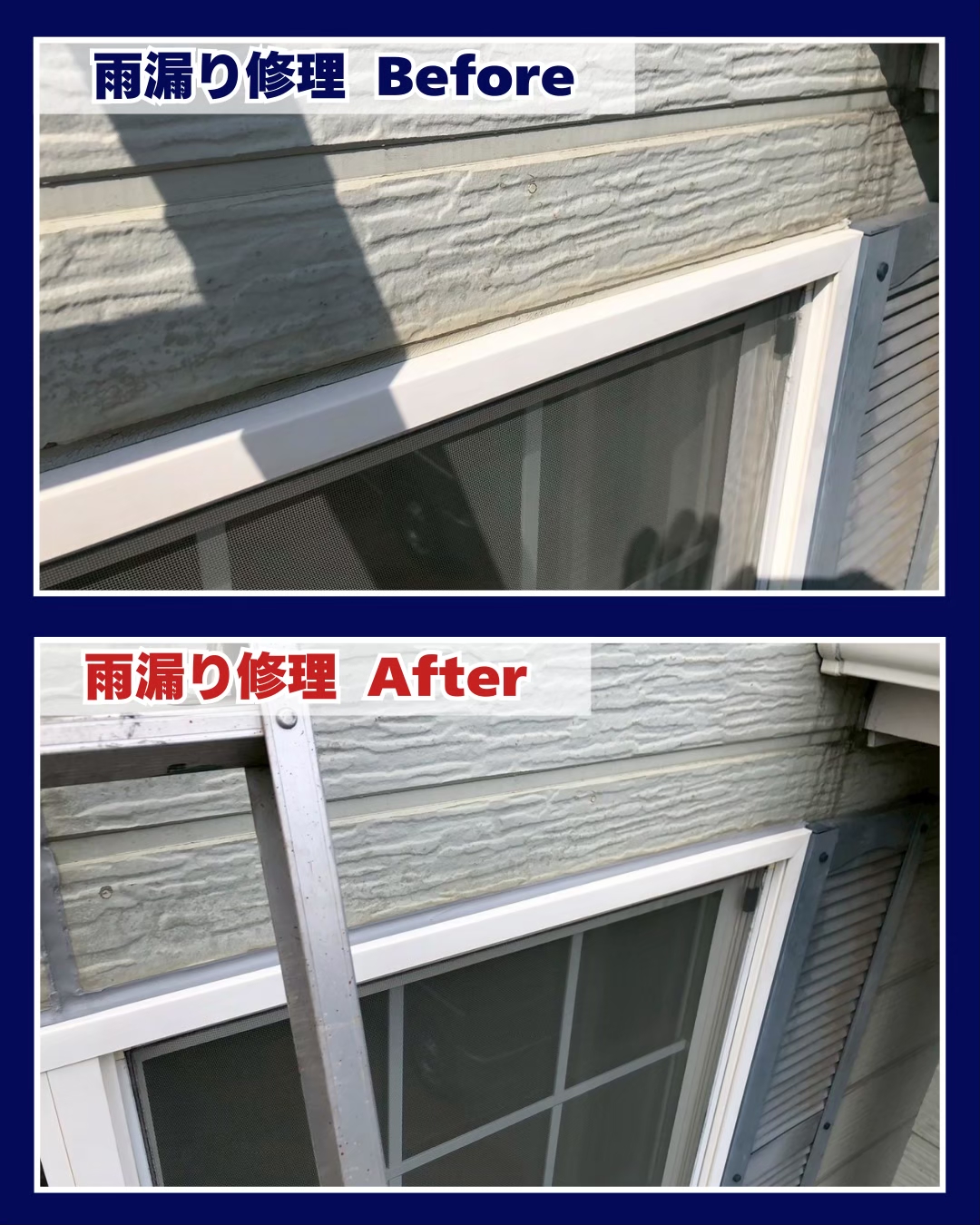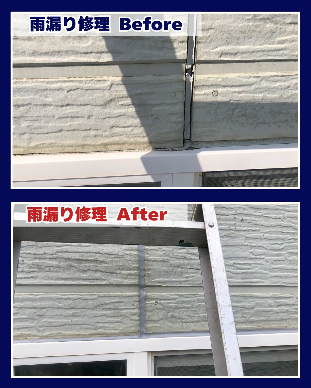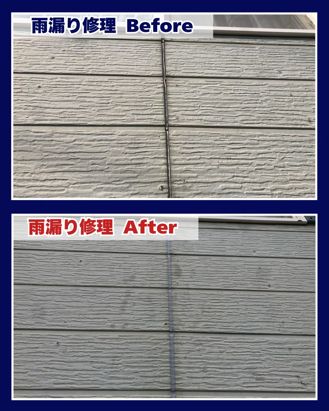 外壁の目地部分から雨水が侵入しやすい状態になっていましたが、しっかりとシーリング補修を行い、雨漏りの心配を解消しました✨