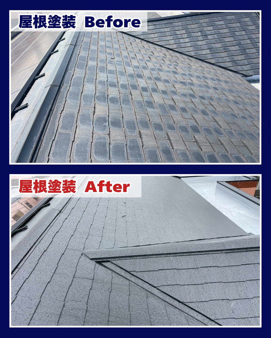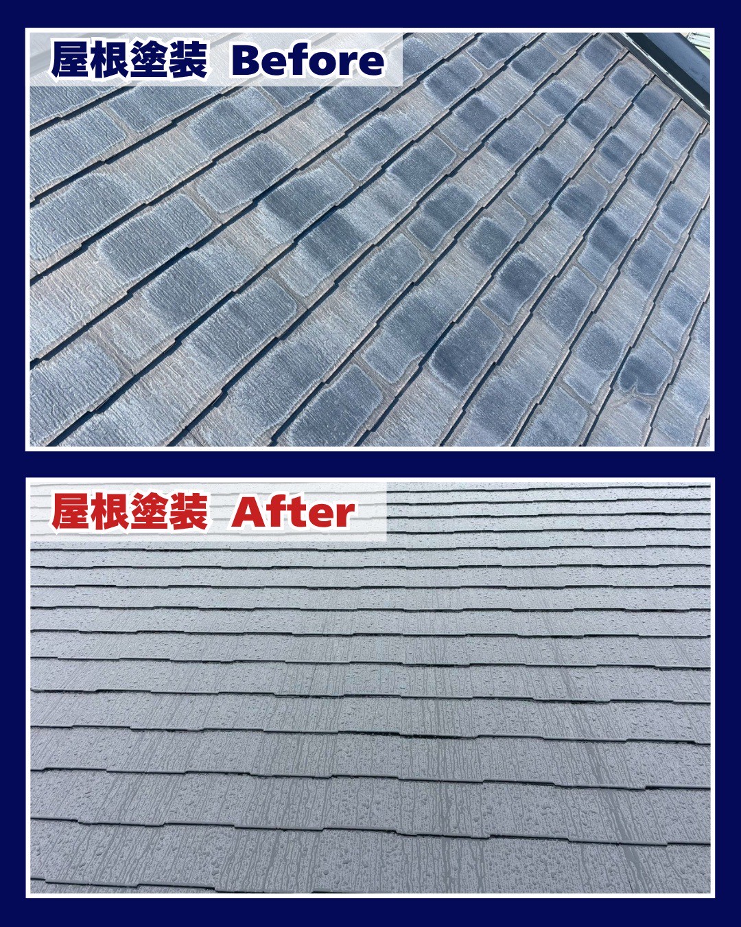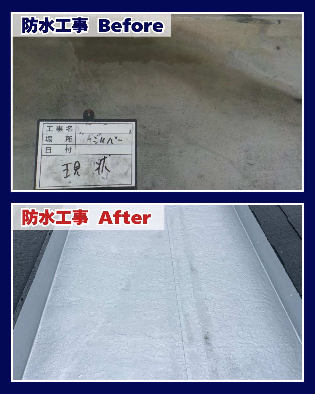 屋根塗装・防水工事 Before → After